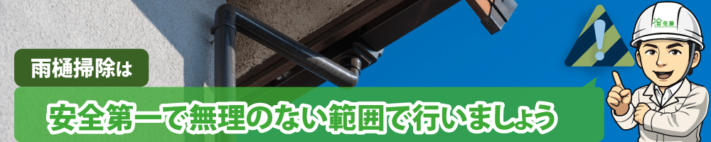 雨樋の清掃は脚立やはしごを使う高所作業が多く、転倒や転落のリスクが非常に高い作業です。慣れない作業や自己流での清掃は、思わぬ事故につながることがあります。